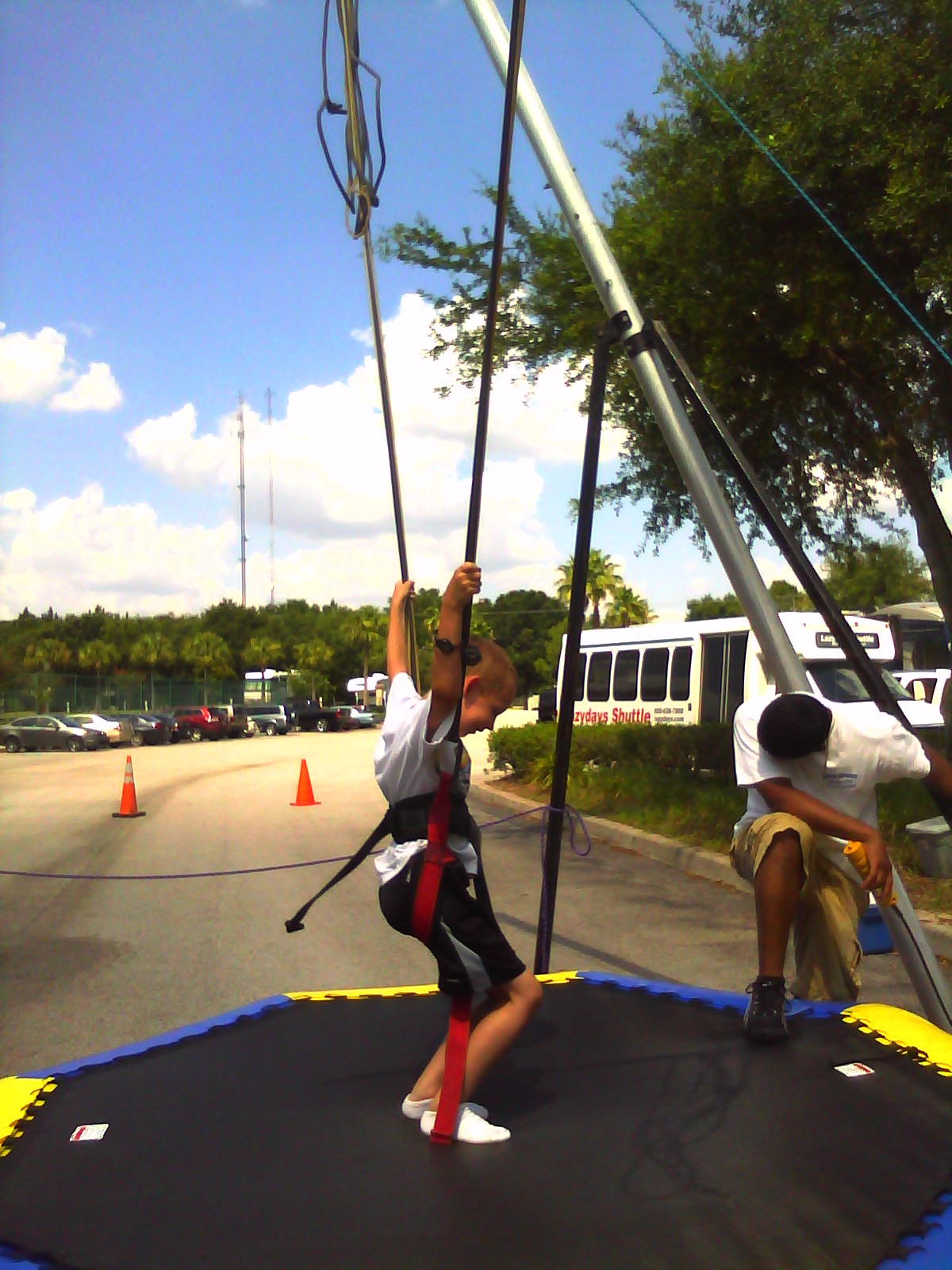 The campground we are at now (in Tampa, FL) is VERY different. There are all kinds of activities planned each day. They even provide breakfast and lunch 6 days a week (if you get there at the right time of course). Trust me when I say, we're paying extra for those services so we plan on using them as much as possible while here. So far, we've used the pool, done a craft, and jumped on a bungie/trampoline thing (see pics). (Let me say, lots of fun and quite the workout!)